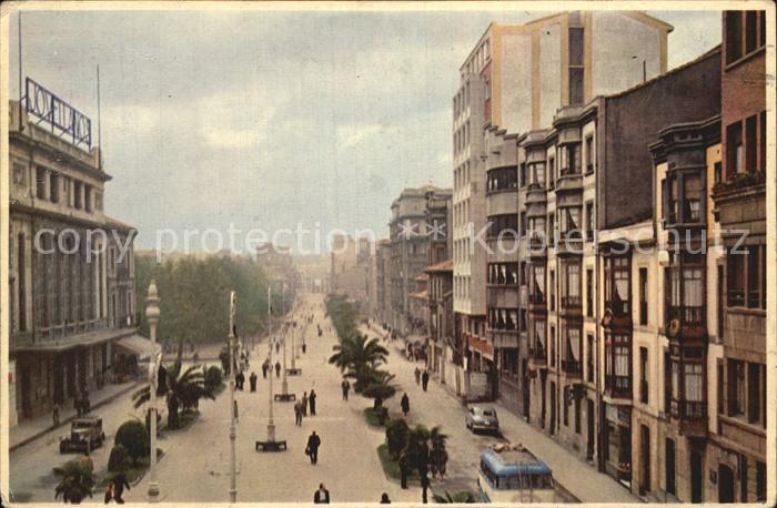 old postcard Gijon Avenue Begona postalisch gelaufen Erhaltung siehe scans