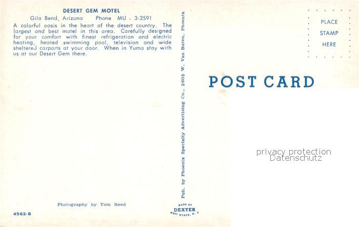 73674374 Gila Bend Dessert Gem Motel Swimming Pool postalisch nicht gelaufen Erhaltung siehe scans [FriedD77] KatCode: 14140030000000