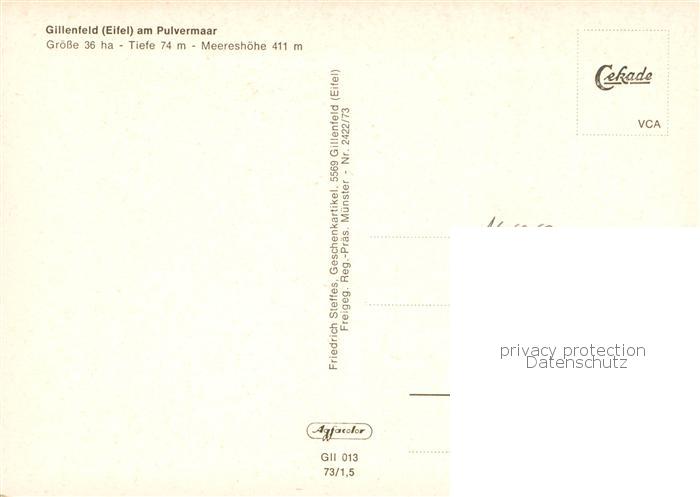 74052305 Gillenfeld Eifel am Pulvermaar Fliegeraufnahme postalisch nicht gelaufen Erhaltung siehe scans [WerneD78] KatCode: 11110007233027
