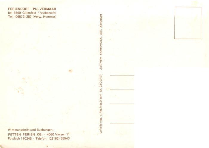 73891351 Gillenfeld Eifel Feriendorf Pulvermaar Fliegeraufnahme postalisch nicht gelaufen Erhaltung siehe scans [WerneD78] KatCode: 11110007233027