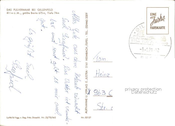 71996472 alte Postkarte Gillenfeld Fliegeraufnahme Das Pulvermaar postalisch gelaufen Erhaltung siehe scans KatCode: 11110007233027