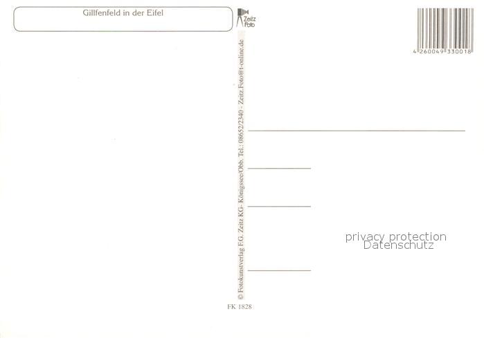 73214664 Gillenfeld Ortspanorama mit Kirche Holzmaar Pulvermaar Badestrand Wappen postalisch nicht gelaufen Erhaltung siehe scans [FriedD77] KatCode: 11110007233027