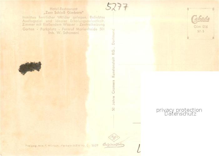 73698722 Gimborn Schloss Hotel Restaurant postalisch nicht gelaufen Fliegeraufnahme Erhaltung siehe scans [FriedD77] KatCode: 11110005374024