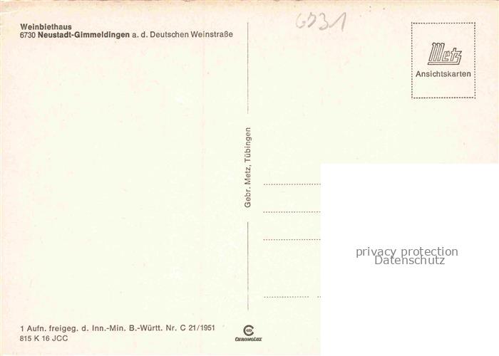 74047394 Gimmeldingen Neustadt Weinstrasse Rheinland-Pfalz Weinbiethaus Gastraum Terrasse Panorama Sender postalisch nicht gelaufen Erhaltung siehe scans [FriedD77] KatCode: 11110007316000
