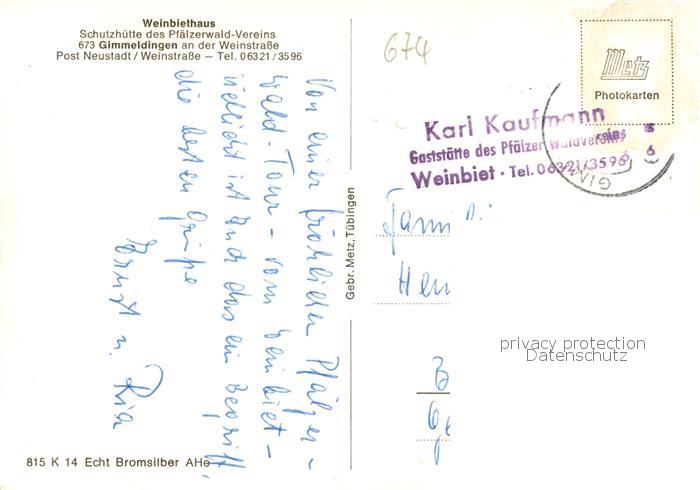 73871474 alte Postkarte Gimmeldingen Weinbiethaus Sendeturm Bergwetterstation Gastraum Terrasse postalisch gelaufen Erhaltung siehe scans [WerneD78] KatCode: 11110007316000