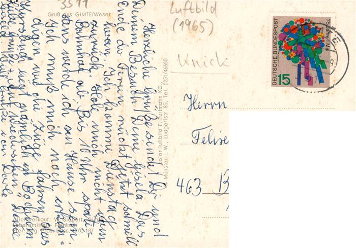 73890953 alte Postkarte Gimte Fliegeraufnahme postalisch gelaufen Erhaltung siehe scans [FriedD77] KatCode: 11110003152016
