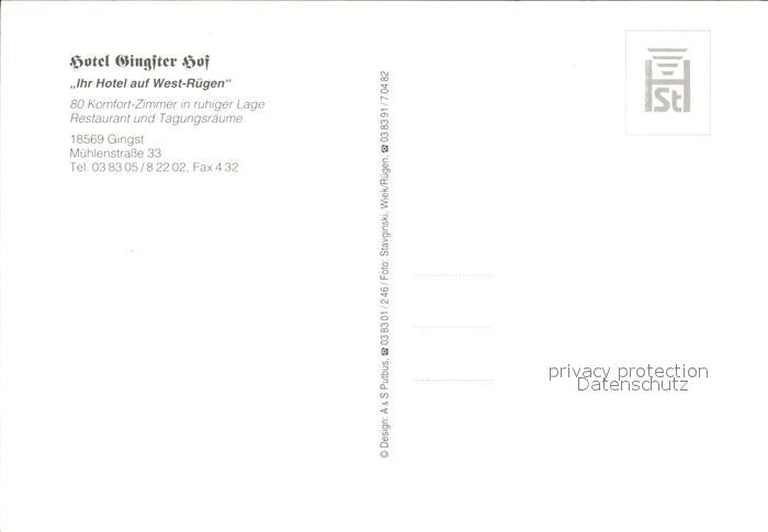 72496485 Gingst Hotel Gingster Hof postalisch nicht gelaufen Erhaltung siehe scans KatCode: 11110013061012