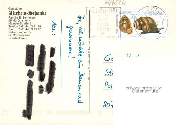 73664736 alte Postkarte Ginsheim-Gustavsburg Altrhein Schaenke Gaststube postalisch gelaufen Erhaltung siehe scans [WerneD78] KatCode: 11110006433005