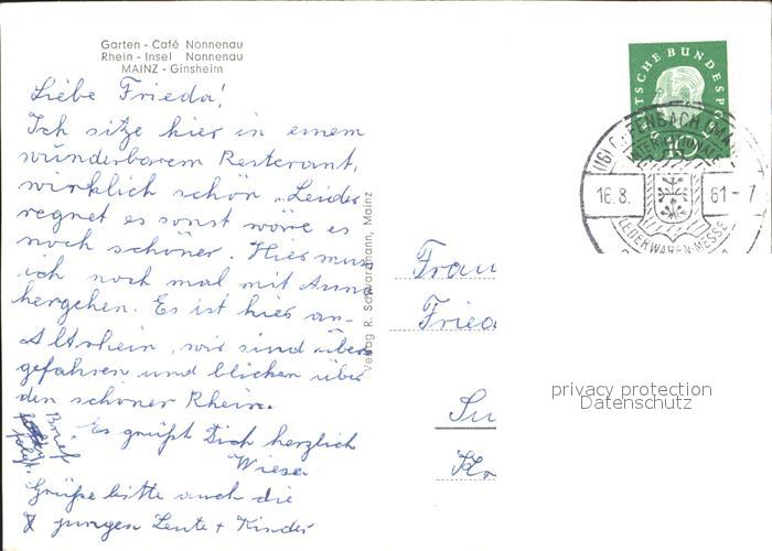 72132630 alte Postkarte Ginsheim-Gustavsburg Garten-Cafe Nonnenau Rheininsel postalisch gelaufen Erhaltung siehe scans KatCode: 11110006433005