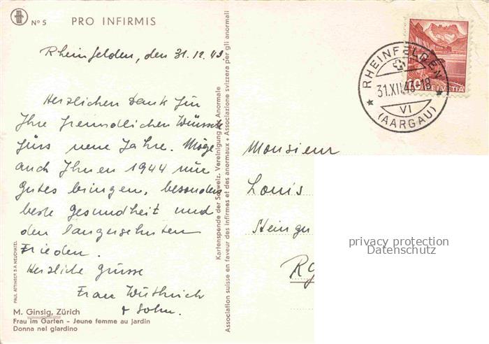 74137919 alte Postkarte GINSIG M. Kuenstlerkarte Zuerich Frau im garten postalisch gelaufen Erhaltung siehe scans [SanaeD93] KatCode: 22240000003200