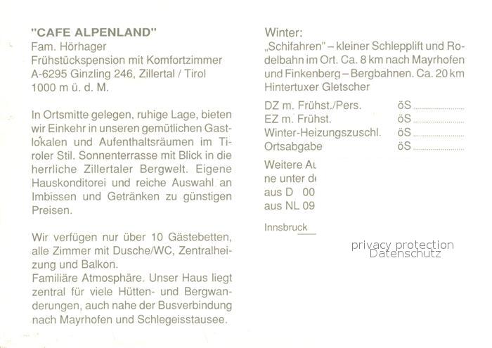 73121190 Ginzling Cafe Alpenland postalisch nicht gelaufen Werbekarte (keine Postkarte) Erhaltung siehe scans [LiesaD40] KatCode: 11390335070920