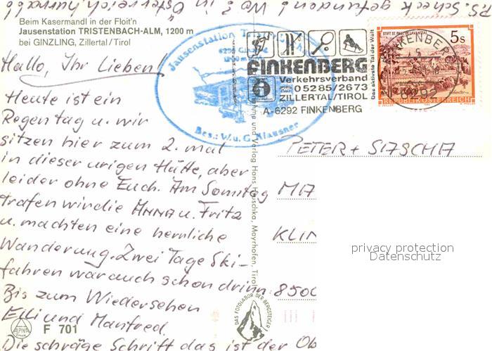 72786564 alte Postkarte Ginzling Jausenstation Tristenbach-Alm postalisch gelaufen Erhaltung siehe scans [LiesaD40] KatCode: 11390335070920