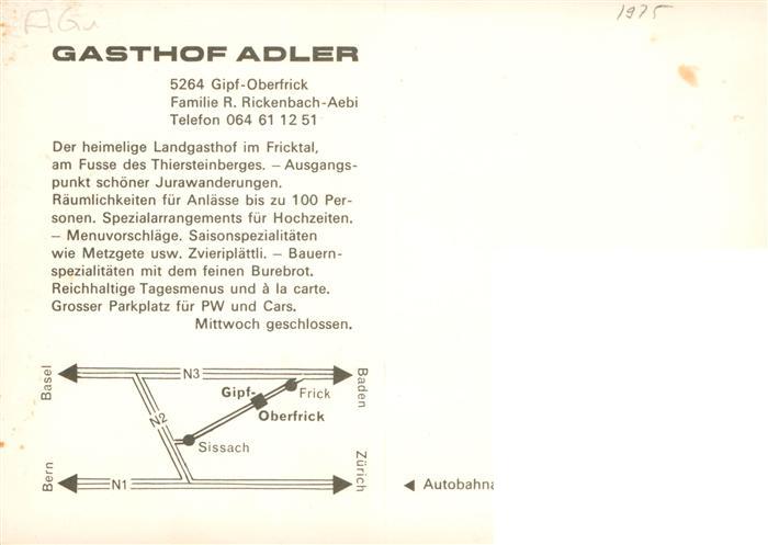 13918090 Gipf-Oberfrick Gasthof Adler Gastraum postalisch nicht gelaufen Erhaltung siehe scans [WerneD78] KatCode: 11470010030268