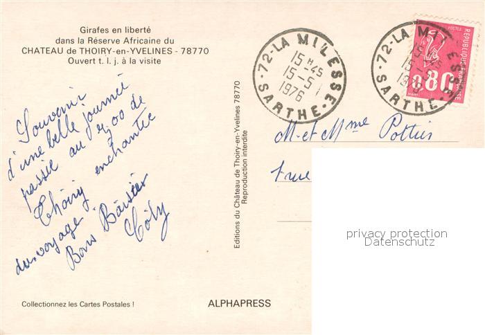 alte Postkarte Giraffe Chateau de Thoiry postalisch gelaufen Erhaltung siehe scans [IrynaD87]