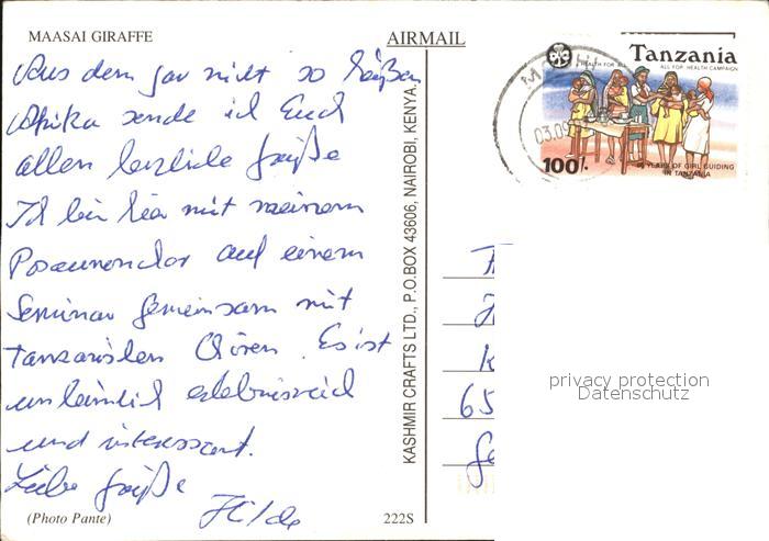 alte Postkarte Giraffe Maasai Giraffe postalisch gelaufen Erhaltung siehe scans