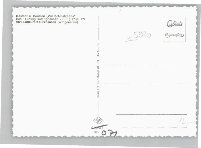 40676178 Girkhausen Bad Berleburg Girkhausen Gasthof Pension zur Schmelzhütte KatCode 11110005970004
