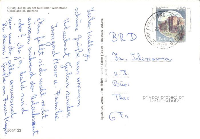 old postcard Girlan postalisch gelaufen Erhaltung siehe scans