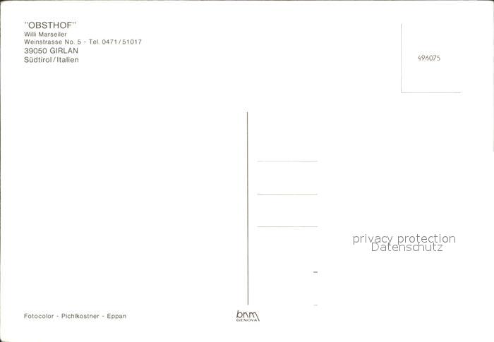 Girlan Obsthof Willi Marseiler postalisch nicht gelaufen Erhaltung siehe scans