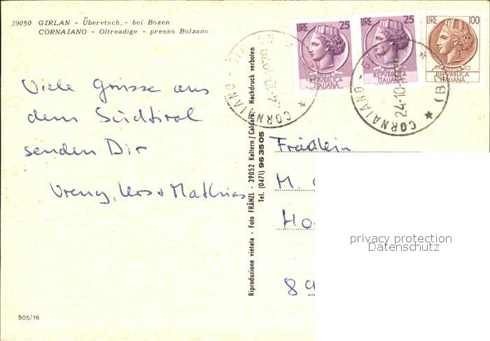 old postcard Girlan Panorama Alpen postalisch gelaufen Erhaltung siehe scans [FriedD77]