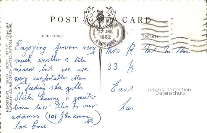 old postcard Girvan Ailsa Hafen Promenade Lake postalisch gelaufen Erhaltung siehe scans