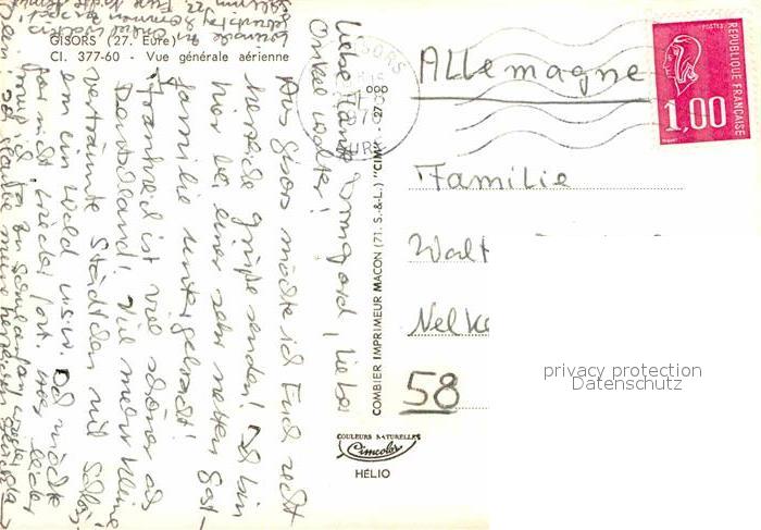 12721092 carte postale Gisors Eure Fliegeraufnahme postalisch gelaufen Erhaltung siehe scans [NatalD47] KatCode: 11170027127284