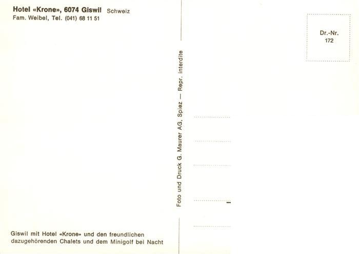 13888552 Giswil Giswyl OW Hotel Krone mit den dazugehoerenden Chalets und Minigolfanlage postalisch nicht gelaufen Erhaltung siehe scans [WerneD78] KatCode: 11470150440298