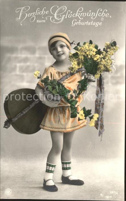 11745937 Gitarre Kind Mädchen Blumen Geburtstag Foto-NPG-Nr. 583/6 KatCode 22560000001800