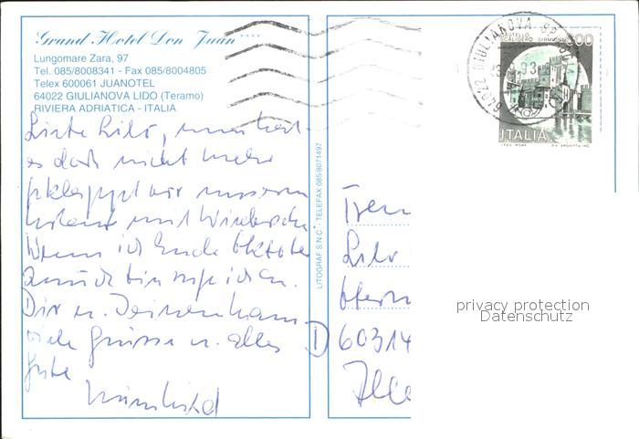 old postcard Giulianova Juanotel Strand postalisch gelaufen Erhaltung siehe scans