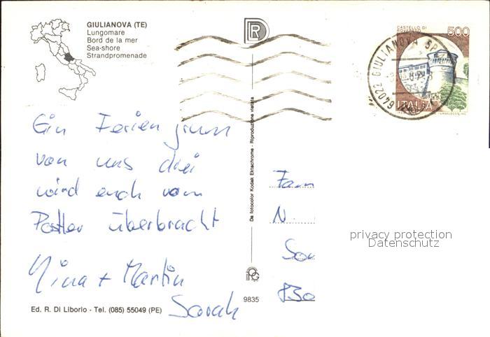 old postcard Giulianova Lungomare Strandpromenade Nachtaufnahme postalisch gelaufen Erhaltung siehe scans [FriedD77]