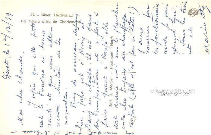 13489532 Givet Ardennes La Meuse prise de Charlemont postalisch nicht gelaufen Erhaltung siehe scans [WerneD78] KatCode: 11170008108190