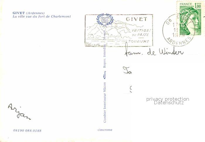 12688759 carte postale Givet Ardennes La ville vue du fort de Charlemont postalisch gelaufen Erhaltung siehe scans [FriedD77] KatCode: 11170008108190