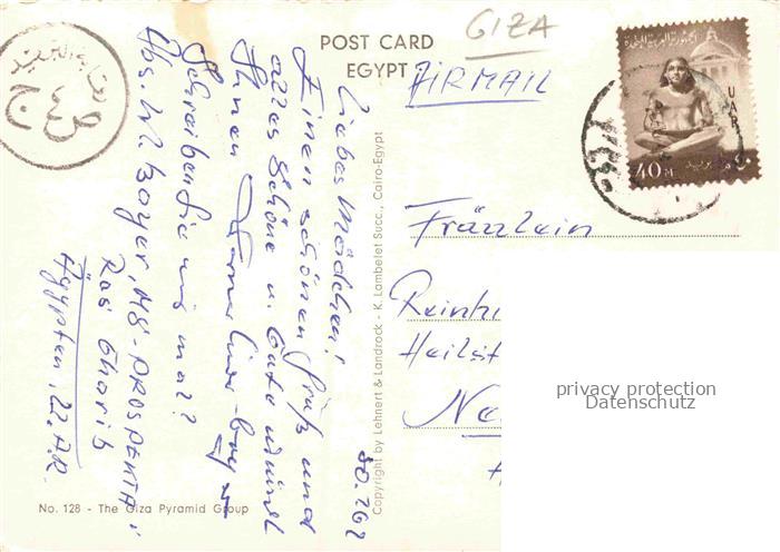 74136593 old postcard Giza Gizeh Egypt Pyramiden postalisch gelaufen Erhaltung siehe scans [IrynaD87] KatCode: 18020