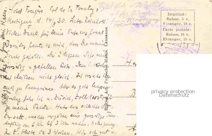 74137027 Glacier Gletscher Glaciar– Le Chemain du Vesevay Trient Aiguille du Tour postalisch gelaufen Erhaltung siehe scans [SanaeD93] alte Postkarte Sana Katcode 22440000000600
