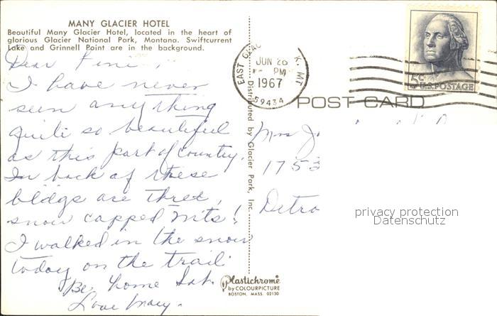 72295578 old postcard Glacier National Park US Many Glacier Hotel Lake postalisch gelaufen Erhaltung siehe scans KatCode: 14140280000000