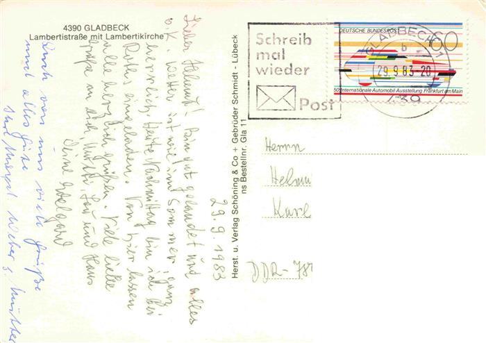 74140787 alte Postkarte Gladbeck Lambertistrasse Lambertikirche postalisch gelaufen Erhaltung siehe scans [IrynaD87] KatCode: 11110005562014