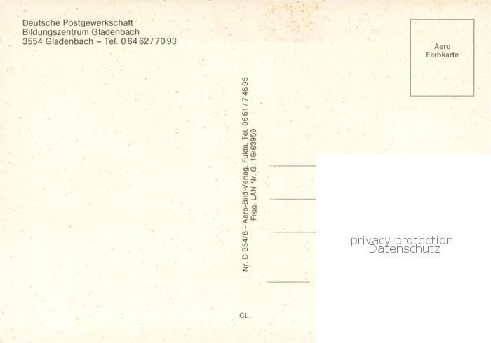 73761234 Gladenbach Hessen Bildungszentrum der Deutschen Postgewerkschaft Fliegeraufnahme postalisch nicht gelaufen Erhaltung siehe scans [WerneD78] Wern Katcode 11110006534010