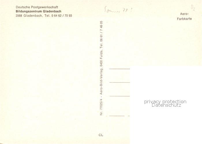73332202 Gladenbach Hessen Bildungszentrum DPG postalisch nicht gelaufen Erhaltung siehe scans [LiesaD40] KatCode: 11110006534010