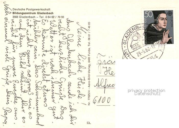 73543090 alte Postkarte Gladenbach Hessen Bildungszentrum Hallenbad postalisch gelaufen Erhaltung siehe scans [FriedD77] KatCode: 11110006534010