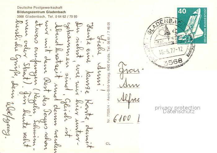 73543078 alte Postkarte Gladenbach Hessen Bildungszentrum Hallenbad postalisch gelaufen Erhaltung siehe scans [FriedD77] KatCode: 11110006534010