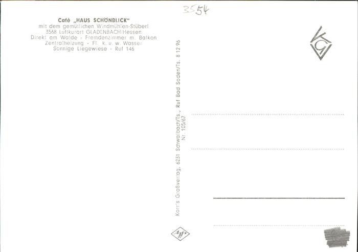 41274890 Gladenbach Hessen Cafe Haus Schoenblick postalisch nicht gelaufen Alte Ansichtskarte Postkarte Stef Katcode 11110006534010