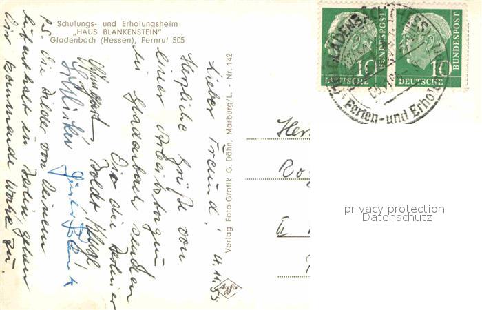 72725031 alte Postkarte Gladenbach Hessen Erholungsheim Haus Blankenstein postalisch gelaufen Erhaltung siehe scans [WerneD78] KatCode: 11110006534010