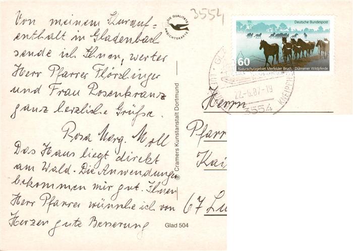 73935058 Gladenbach Hessen Ev Martins Kirche Fliegeraufnahme Rathaus Einkaufszentrum postalisch gelaufen Erhaltung siehe scans [FriedD77] alte Postkarte Frie Katcode 11110006534010
