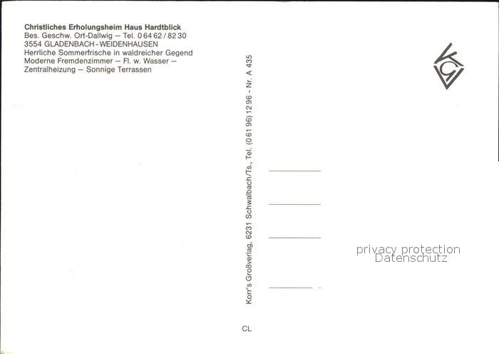 72549634 Gladenbach Hessen Haus Hardtblick postalisch nicht gelaufen Erhaltung siehe scans [AndreD76 kv022box] KatCode: 11110006534010