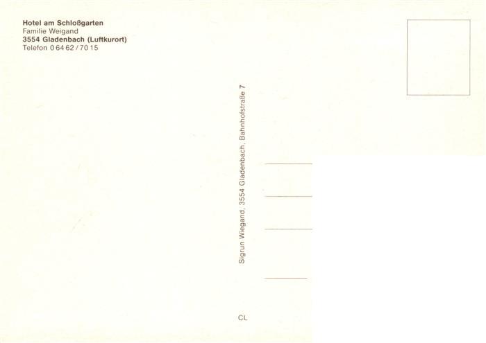 73896390 Gladenbach Hessen Hotel am Schlossgarten Fremdenzimmer Hallenbad postalisch nicht gelaufen Erhaltung siehe scans [FriedD77] Frie Katcode 11110006534010