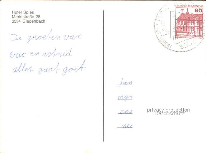 72605714 alte Postkarte Gladenbach Hessen Hotel Spies postalisch gelaufen Erhaltung siehe scans [AndreD76] KatCode: 11110006534010