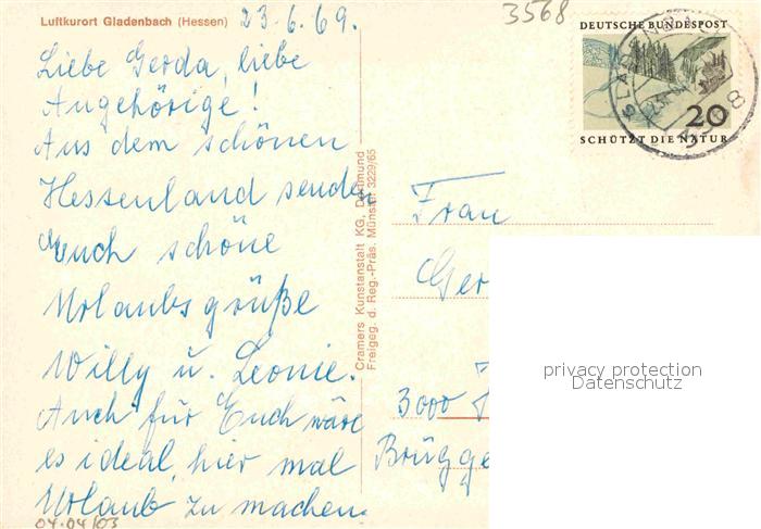72912368 alte Postkarte Gladenbach Hessen Luftkurort Fliegeraufnahme postalisch gelaufen Erhaltung siehe scans [FriedD77] KatCode: 11110006534010