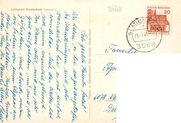 73935230 Gladenbach Hessen Panorama postalisch gelaufen Erhaltung siehe scans [FriedD77] alte Postkarte Frie Katcode 11110006534010
