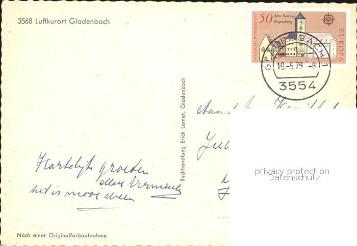 72392385 alte Postkarte Gladenbach Hessen Stadtblick postalisch gelaufen Erhaltung siehe scans KatCode: 11110006534010