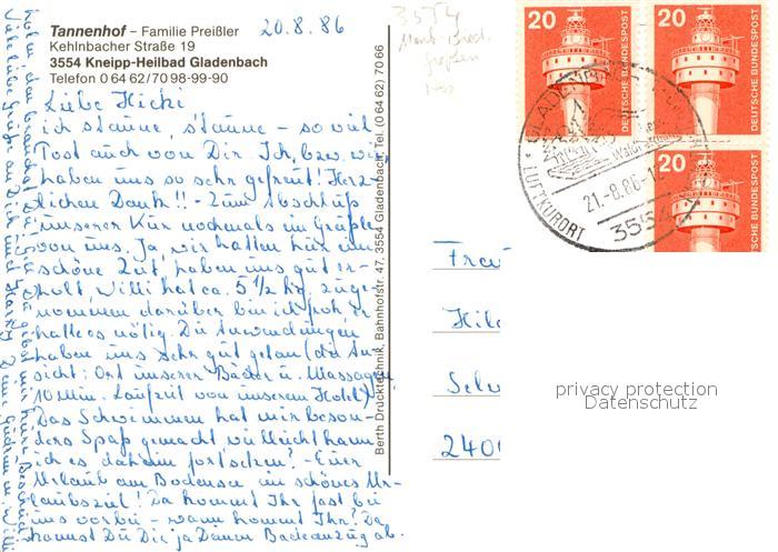 73642167 alte Postkarte Gladenbach Hessen Tannenhof postalisch gelaufen Erhaltung siehe scans [WerneD78] KatCode: 11110006534010