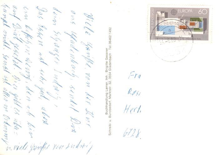 73935038 Gladenbach Hessen Teilansicht Kneipp Kuranlage Hallen und Freibad Marktstrasse Panorama Hallenbad Kath Kirche postalisch gelaufen Erhaltung siehe scans [FriedD77] alte Postkarte Frie Katcode 11110006534010